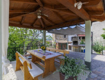 Beautiful terraced house Villa Nicolara, 2 storeys. In the hamlet Krušvari 9 km from the centre of Buzet, in a sunny position, 45 km from the sea. Private: property 200 m2, garden with lawn, swimming pool (15 m2, depth 150 cm, seasonal availability: 01.May. - 15.Sep.). Outdoor shower, terrace (20 m2), garden furniture, barbecue, pool maintenance by the owner/gardener. In the house: internet access, washing machine. Parking (for 2 cars) at the house on the premises. Shop 9 km, supermarket 9 km, restaurant 1.5 km, bus stop 9.5 km, pebble beach 45 km, rocky beach 45 km. Walking paths from the house 100 m, cycle lane 150 m. Nearby attractions: Nature park Učka 18 km. The owner does not accept any youth groups.